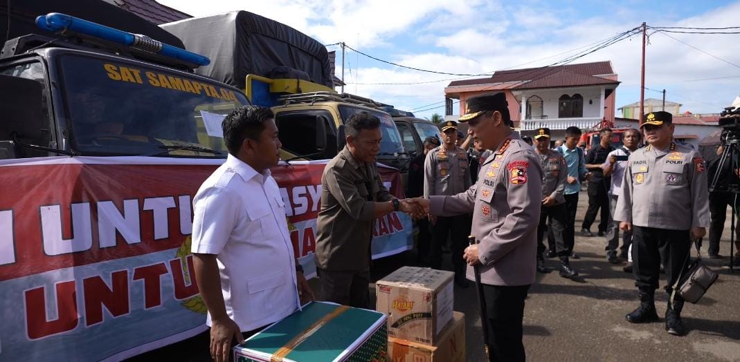Sebagai bentuk kehadiran negara, Kapolri juga menyerahkan secara simbolik delapan truk bantuan ‘Polri untuk Masyarakat’ yang berisi bahan makanan, pakaian dan kebutuhan sehari-hari kepada Bupati Tapanuli Tengah, Masinton Pasaribu. Bantuan tersebut langsung didistribusikan ke posko pengungsian warga terdampak banjir di GOR Pandan, Tapanuli Tengah.