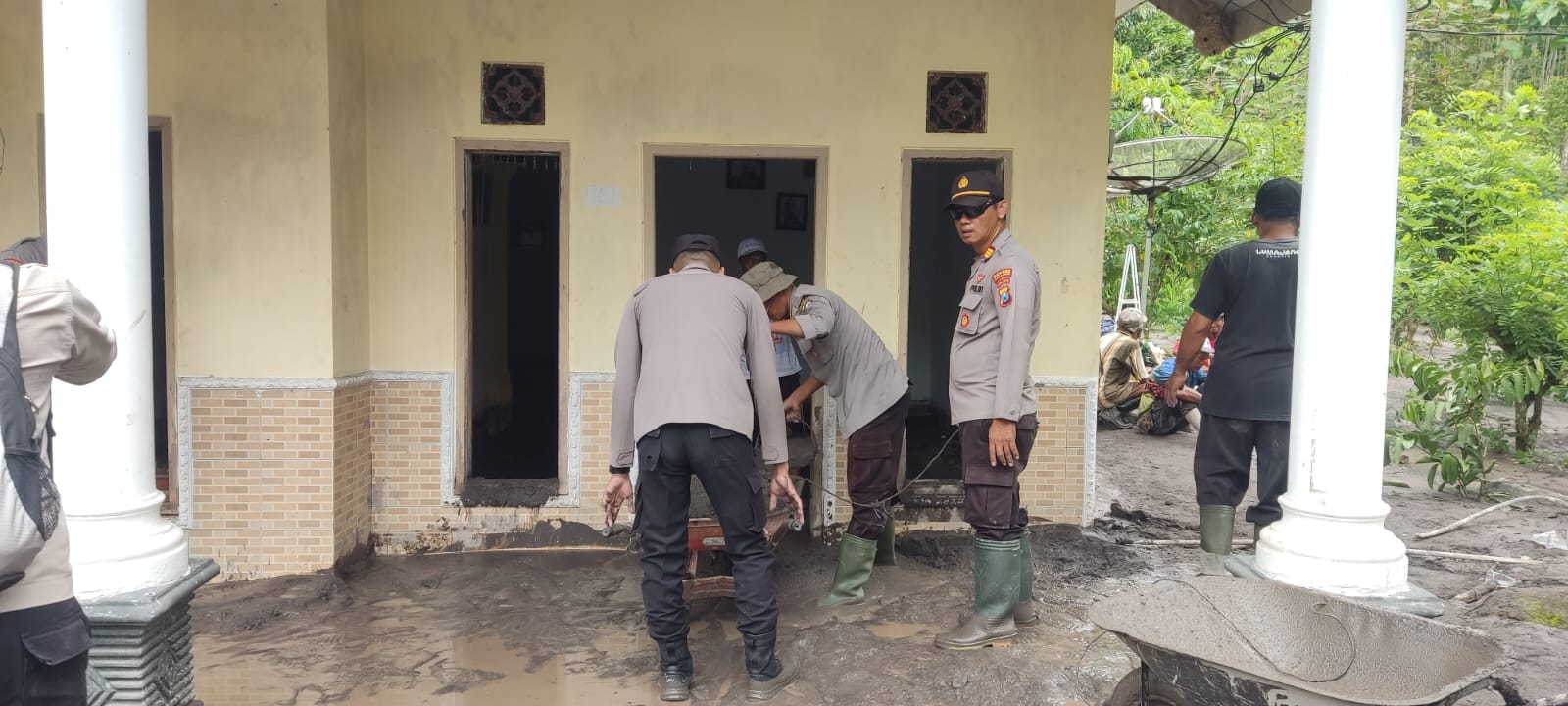 Selain membersihkan rumah warga, personel kepolisian juga melakukan pembersihan jalan-jalan pemukiman yang tertutup material lahar dan abu vulkanik agar aktivitas masyarakat dapat kembali berjalan normal.
