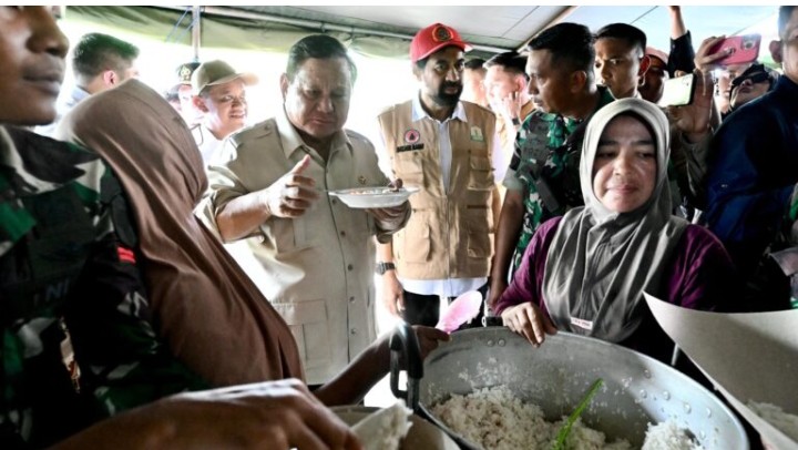 Presiden Prabowo kemudian bergerak menuju dapur umum untuk meninjau langsung persiapan distribusi pangan untuk pengungsi. Di sana, Presiden berbincang dengan para relawan dan memastikan stok logistik tetap tersedia. Kepala Negara bahkan turut mencicipi nasi dan ikan tongkol, menu makan siang yang disiapkan untuk para pengungsi.
