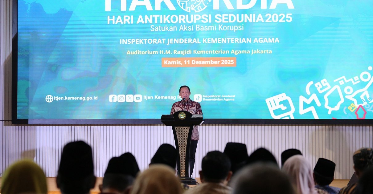 Pesan itu disampaikan dalam rangkaian Peringatan Hari Antikorupsi Sedunia (HAKORDIA) 2025 di Auditorium H.M. Rasjidi, pada Kementerian Agama (Kemenag), Jakarta, Kamis (11/12/2025).