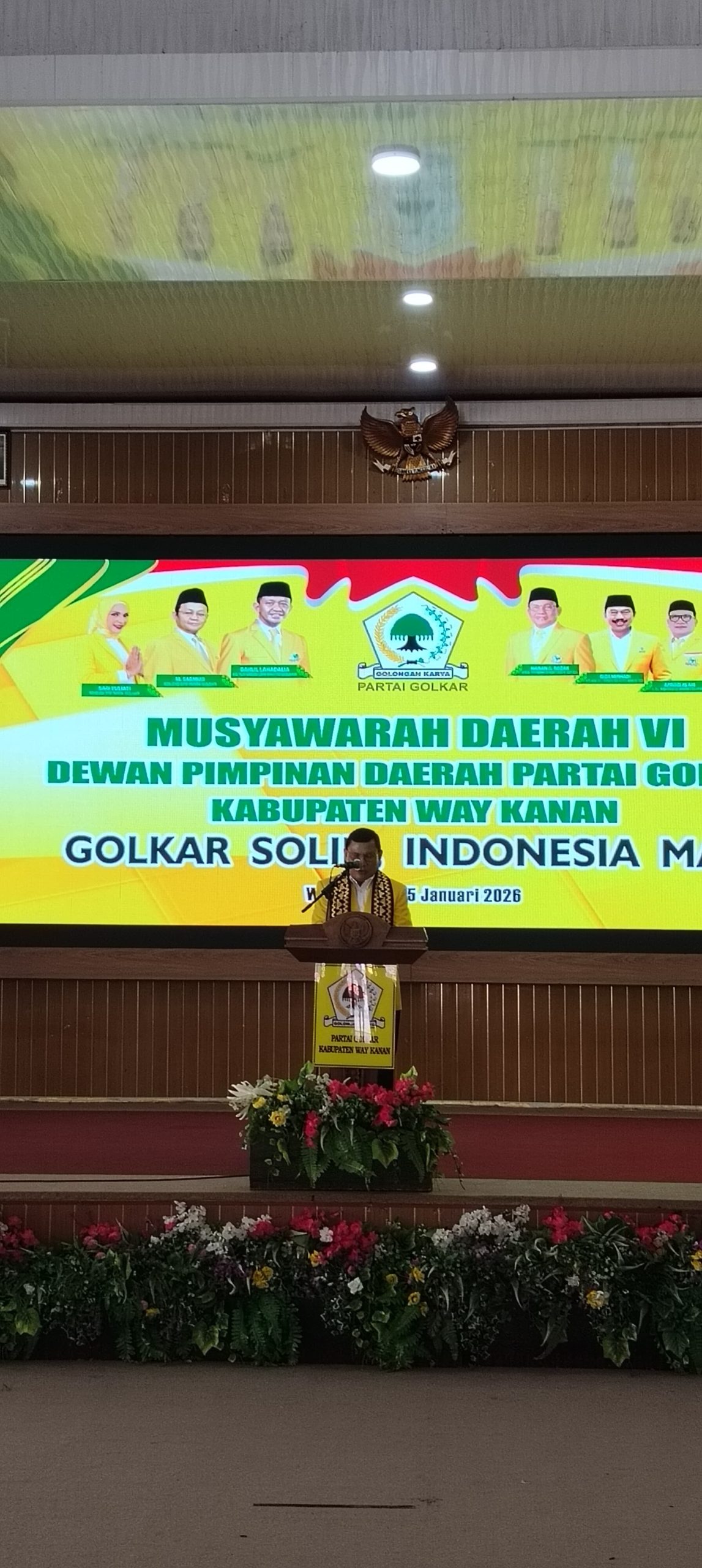 Way Kanan,mentaripagi.i-news.site – DPD Partai Golkar Kabupaten Way Kanan menggelar Musyawarah Daerah (Musda) VI di Gedung Serba Guna (GSG) Way Kanan, Blambangan Umpu, Minggu (25/1/2026).