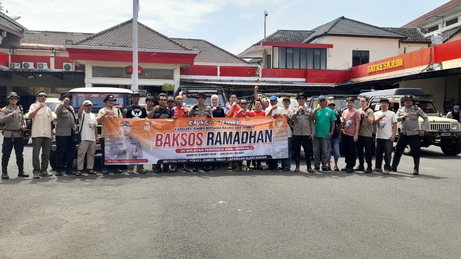 Jember,mentaripagi.i-news.site – Semangat berbagi di bulan suci tidak terhalang oleh sulitnya akses geografis. Komunitas Raung 4×4 Jember bersama Polres Jember menggelar aksi Bakti Sosial (Baksos) Ramadan dengan menyasar wilayah-wilayah terpencil di Kabupaten Jember pada Minggu (8/3/2026).